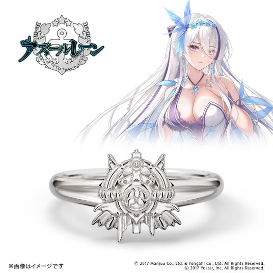今回の新作は「アズールレーン」に登場する重桜陣営の重巡洋艦「雲仙」、ユニオン陣営の航空戦艦「キアサージ」、ロイヤル陣営の軽空母「パーシュース」3名それぞれの衣装の装飾やイメージを表現したリング(指輪)です。