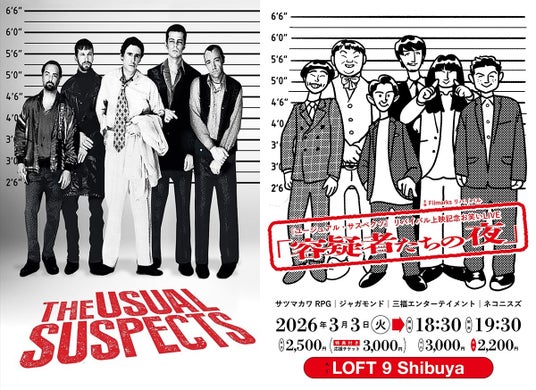 日本公開30周年でリバイバル上映される『ユージュアル・サスペクツ』の公開を記念し、3月3日(火)渋谷でお笑いLIVE【容疑者たちの夜】の開催が決定!