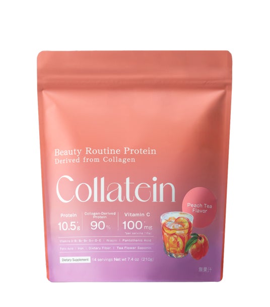 「コラーゲンプロテイン」という新カテゴリーの提案コラテインは、美容に特化した「コラーゲンプロテイン」という市場の空白をついた新しいカテゴリーを提案し、プロテインには珍しい「レモネード」や「ピーチティー」といったすっきりとした味わいが好評のプロテインです。多くのプロテインがミルク系・チョコ系のフレーバーを展開する中、コラテインは競合の少ない「ピーチティー」かつ「さわやかな味わい」のニーズを喚起。ピーチティーは好評につき2025年販売分が一時完売し、2026年1月30日より再販を開始しています。