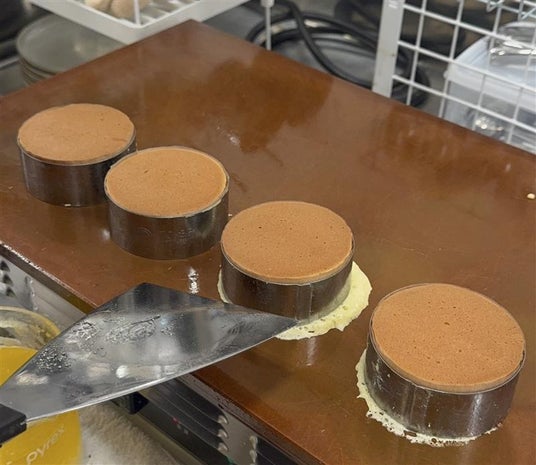 ショコラテリーヌのような濃厚かつ滑らかな食感のショコラプリン。フワッとした口当たりとほんのりビターなテイストの限定ショコラホットケーキを重ねたスペシャルメニューです。