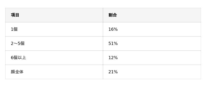 - シミの数・範囲は過半数の人が「2~5個以上」(51%)
