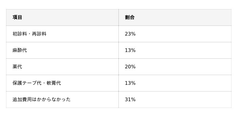 また33%の人は「一部別料金」と回答しているためクリニックによって異なることが読み取れます。