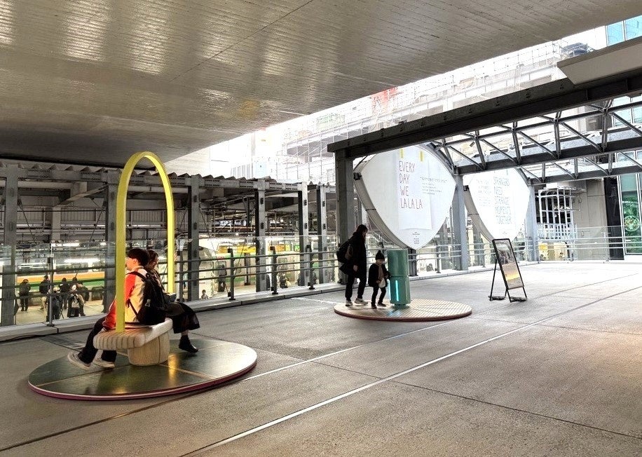 この作品はベンチを揺らすと音が流れるなど、まちを行き交う人々が即興的にアートをつくり出すことができる装置です。それを世界で最も人が行き交う交差点のあるまち・渋谷に出現させたアーティストの意図や想いに、ぜひご注目ください。