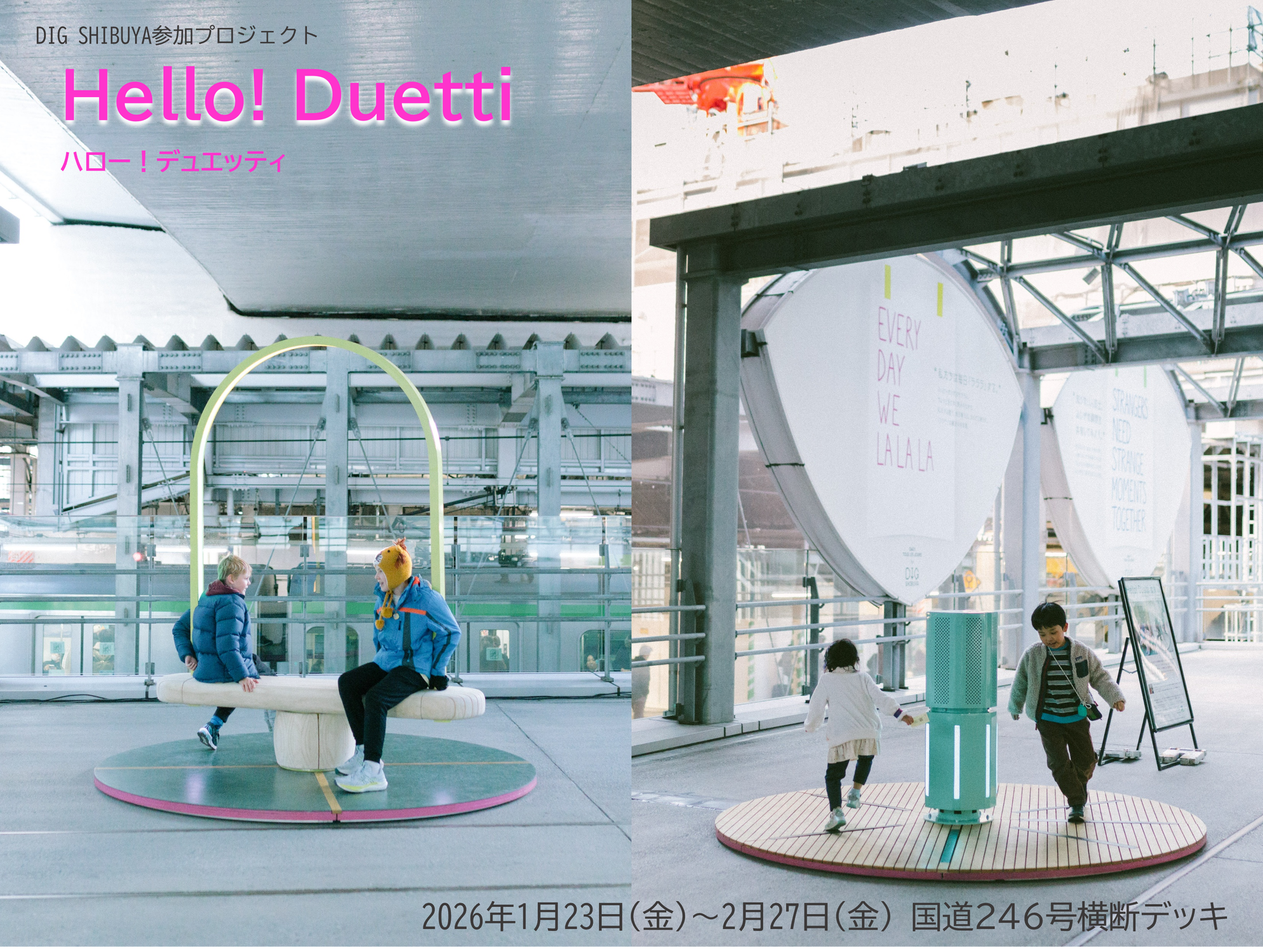 『DIG SHIBUYA 2026』に参加する体験型パブリックアートプロジェクト『Hello!Duetti』(ハロー!デュエッティ)が2月27日(金)まで渋谷に出現中!