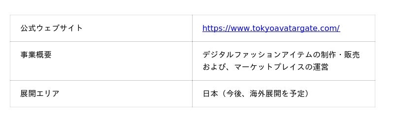 - デジタルファッション事業:デジタルファッションマーケットプレイス「TOKYO AVATAR GATE」の運営