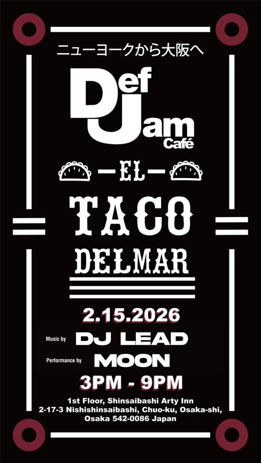 株式会社AZURE(本社:大阪市中央区、代表取締役:中川達裕、以下:AZURE)は、世界的ヒップホップレーベル「Def Jam」が手がける「Def Jam Cafe」と、NYCのストリートフードカルチャーを展開する「EL TACO DEL MAR」による、1日限りのストリートポップアップイベントを2026年2月15日(日)に大阪・心斎橋アメリカ村にて開催いたします。