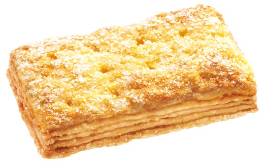 ・「ミルキー」のれん乳を使用したクッキー生地とパイ生地を組み合わせじっくり焼き上げた、ミルクの風味とサクサク食感が楽しめる素朴で優しい味わいのパイ