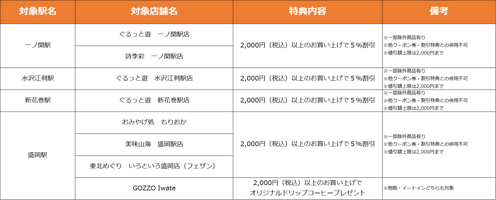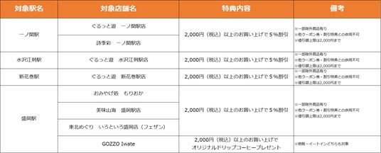 【岩手県】特典対象店舗・特典内容