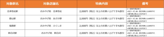 【福島県】特典対象店舗・特典内容