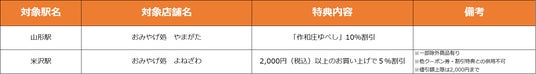 【山形県】特典対象店舗・特典内容