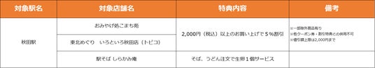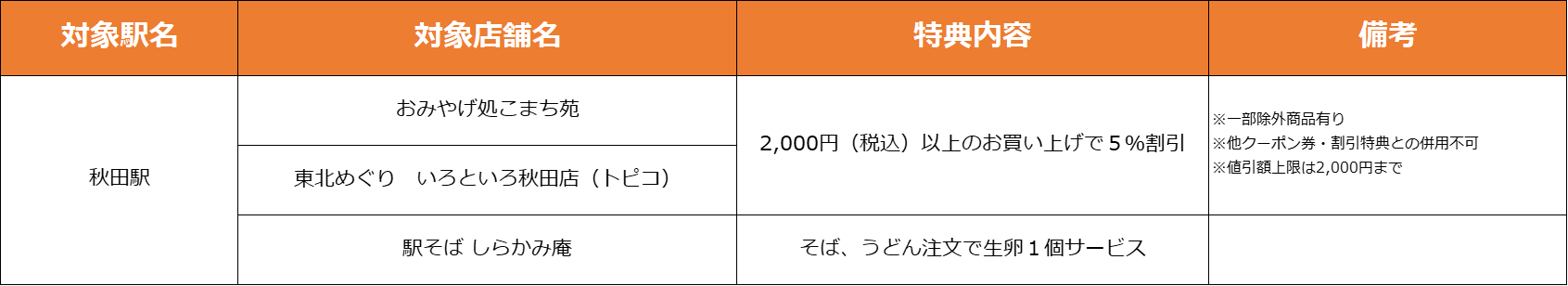【秋田県】特典対象店舗・特典内容