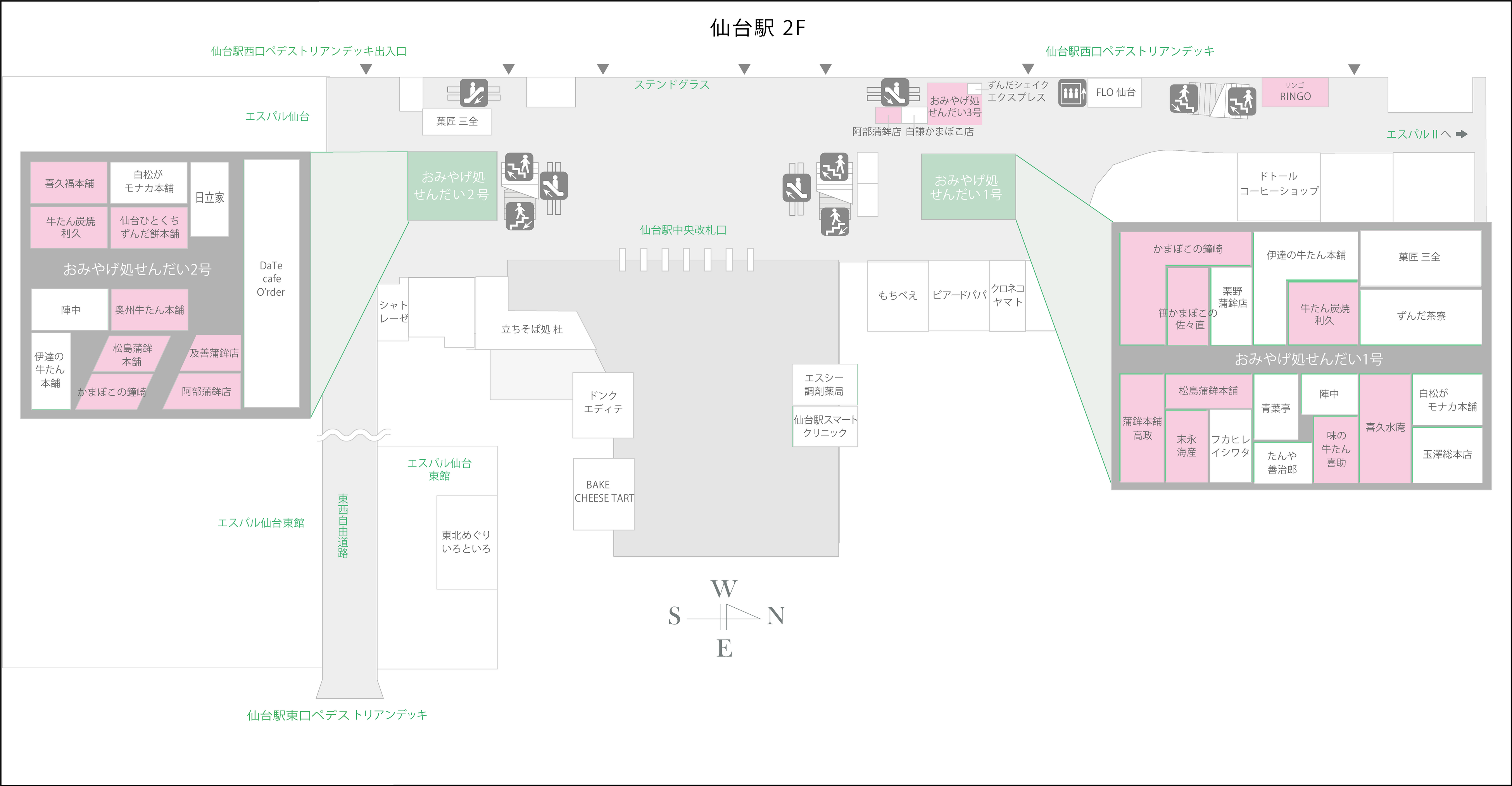 【仙台駅2F】特典対象店舗・特典内容・フロアマップ