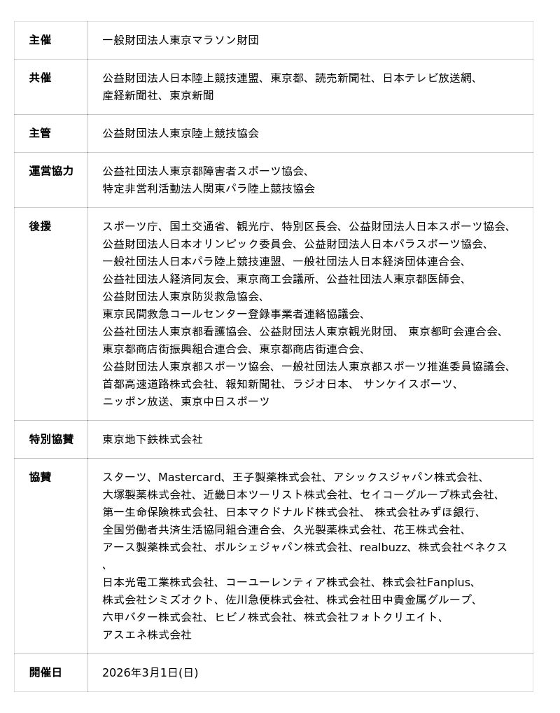 ※開催概要は本プレスリリースが発表された時点の情報です。最新情報は東京マラソンの公式サイトをご確認ください。