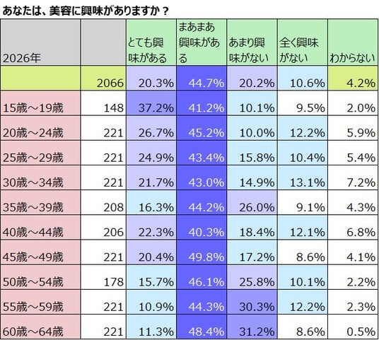 男性の美容への興味、40歳までは「興味がある」が多数派。