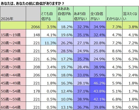 「とても自信がある」最も多いのは20代後半男性。「自信がない」は全世代で女性が男性を上回る。