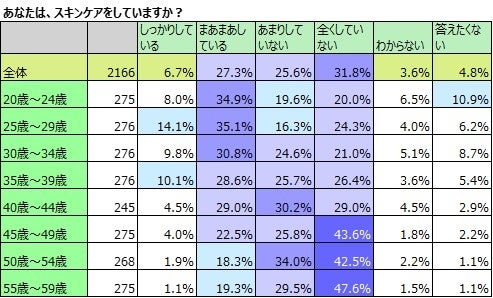 女性は20代前半でスキンケア習慣が二極化する可能性あり。