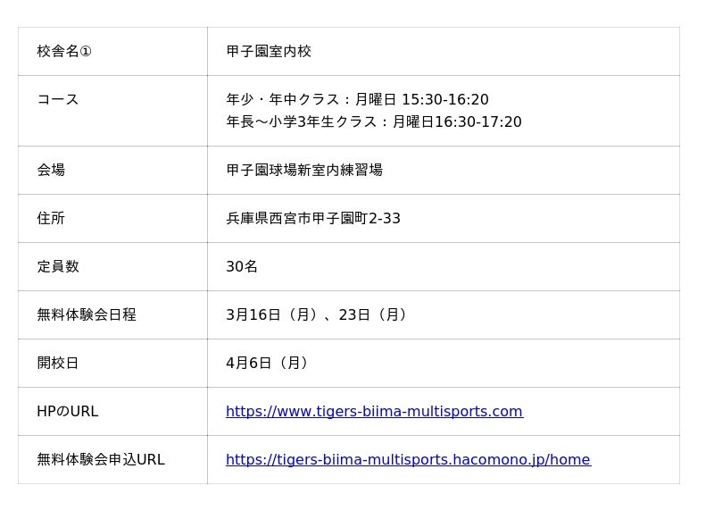 ■タイガースアカデミーマルチスポーツスクールの詳細