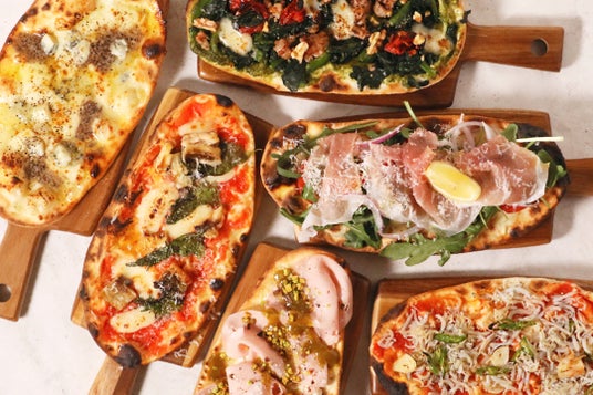 ▽ピザ、リゾット、メイン:タパス感覚で楽しむクロッカンテスタイルのスクエアピザやリゾットなど幅広いメニューラインナップ