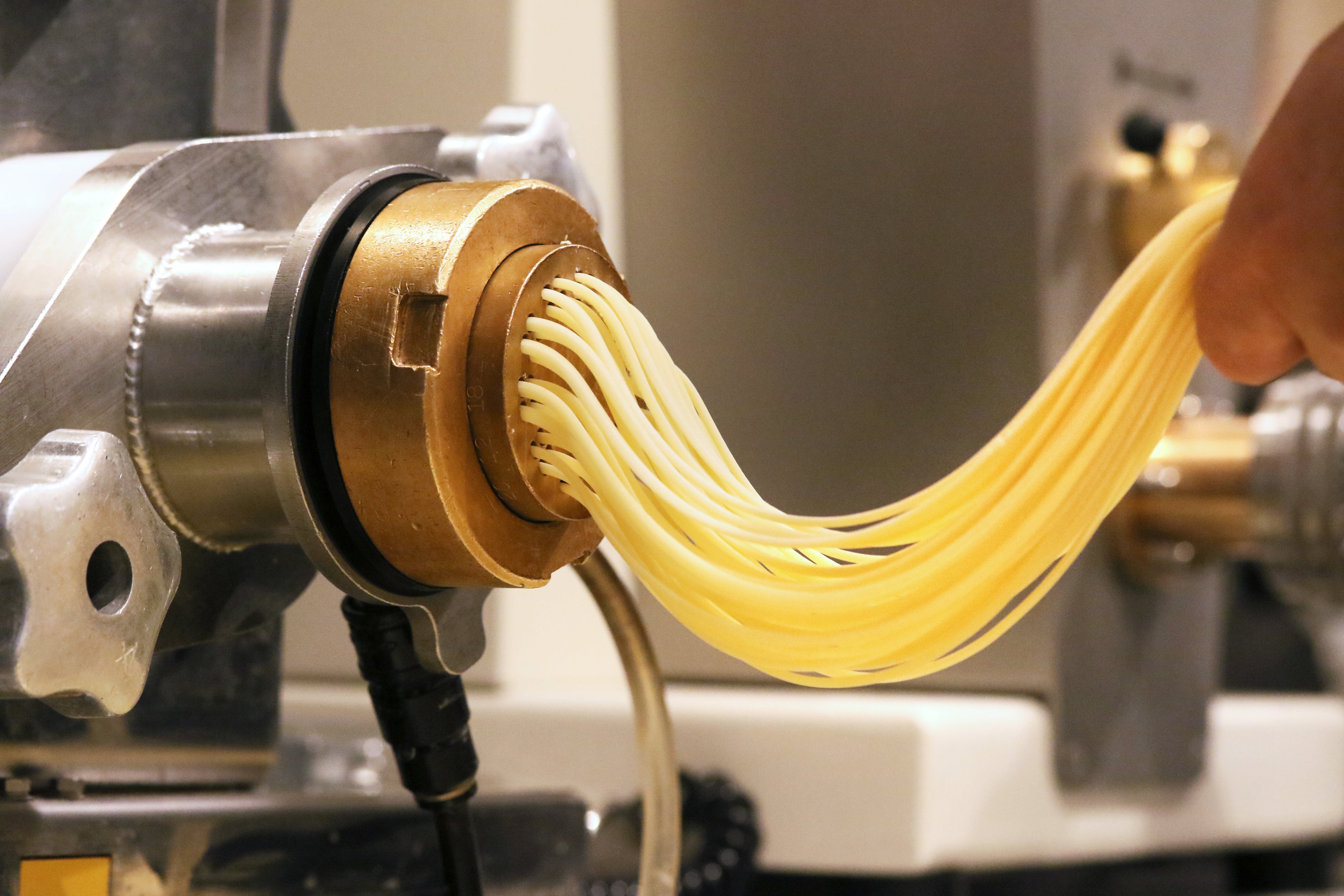 本場イタリアから取り寄せた製麺機で、小麦・水・塩から仕込む生地を毎日シェフが製麺し、店内で一から仕上げるクラフト生パスタ。