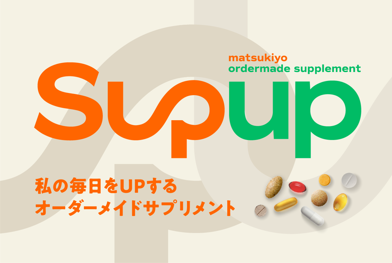 近年、健康意識の高まりとともに、サプリメントは「特別なもの」から「日常的に取り入れるもの」へと変化しています。matsukiyo LABのサプリメントをご利用のお客様から、もっと手軽に、時間や場所を問わずSUPPLEMENT Bar(サプリメントバー)のサービスを利用できないかとのお声を受けて、より多くの方に気軽に便利にご利用いただけるサービスとして「Supup(サップアップ)」とリブランディングし、従来の全国33店舗でのご提供に加え、オンラインでの提供を開始し、400万通りの中から最適なプライベートブランドのサプリメントをご提案いたします。