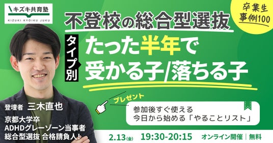 2026年2月13日(金)、キズキ共育塾は、無料オンラインイベントを開催します。