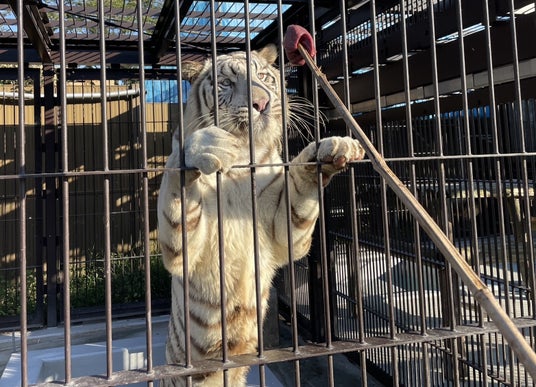 ・動物園のバックヤードで”ホワイトタイガー”の餌やり体験