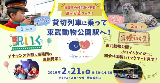 名称:駅いく × 探いく ― 貸切列車に乗って東武動物公園駅へ!開催日時:2026年2月21日(土)9:30~14:30 ※各コース共通