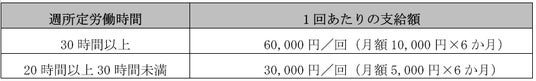 就業期間と週所定労働時間に応じてサポート金を支給