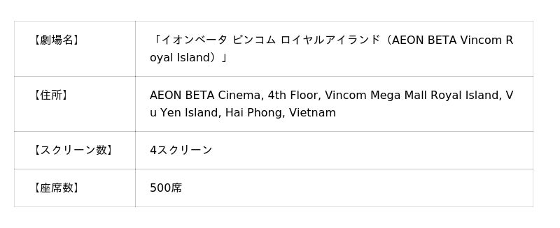 ■「イオンベータ ビンコム ロイヤルアイランド(AEON BETA Vincom Royal Island)」 劇場概要