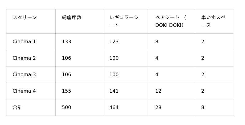 新劇場は全4スクリーン、500席を備えています。穏やかな海をイメージしたロビーフロア では、波や水の動きを思わせる柔らかな照明が、開放的で風通しの良い空間を演出。映画鑑賞の前後にゆったりとくつろげるスペースをご提供します。上映作品は、日本で大ヒットを記録した『国宝』をはじめ、日本が世界に誇る人気タイトルや話題作を積極的に上映するとともに、日本アニメの公式グッズ販売にも注力してまいります。
