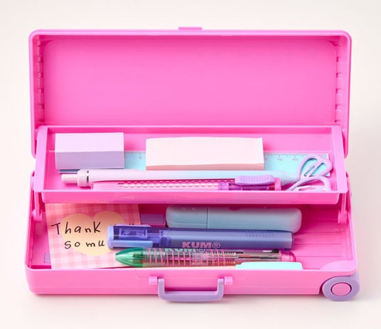 トレー付きで文具をたっぷり収納できる、スーツケース型の可愛いペンケース。