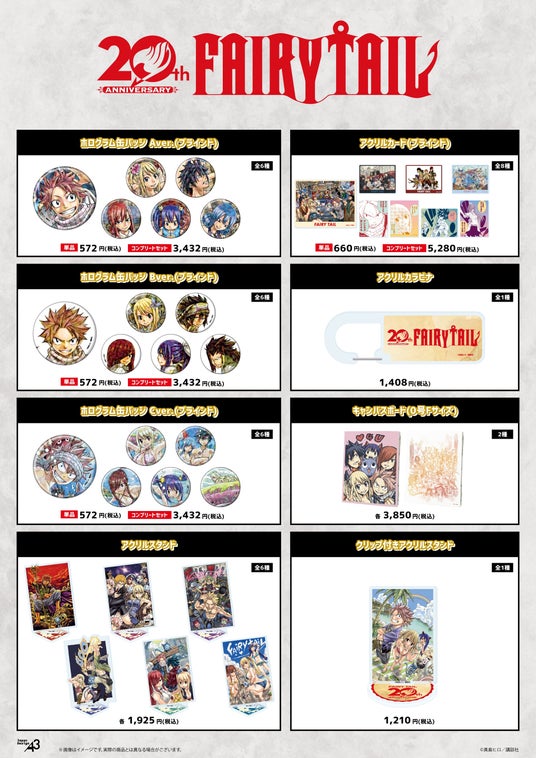 真島ヒロ先生による王道ファンタジー漫画「FAIRY TAIL」の連載20周年を記念した新作グッズの発売が決定! 2026年2月6日(金)よりeeo Store onlineにて通販がスタートし、3月21日(土)からはeeo Store 池袋本店にて店舗販売も始まります。
