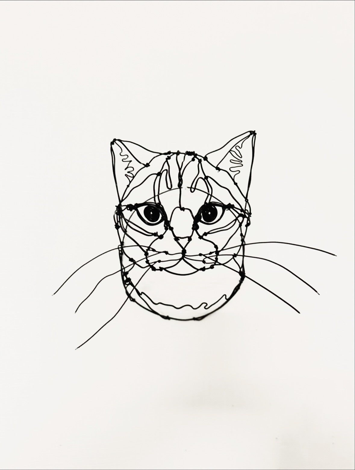 黒いワイヤーで一本一本ていねいに仕上げた、思わず見入ってしまう猫のワイヤーアートが並びます。ちょこんとおすわりする姿、のんびり歩く後ろ姿、ふとこちらを見るしぐさまで。
