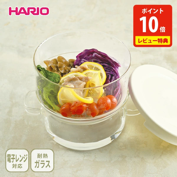 本日2026年2月10日は、耐熱ガラス製で電子レンジによって二品同時に調理ができるHARIO(ハリオ)の新作「ガラスのせいろ蒸し器」が、お得に登場しています。