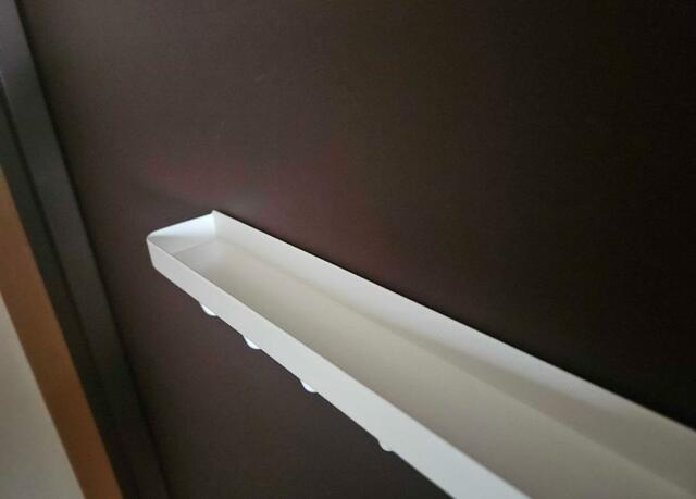 約W24.5×D4.5×H6cmでコンパクトな仕様。玄関ドアに取り付けても圧迫感は特になく、物もしっかり置くことができます。