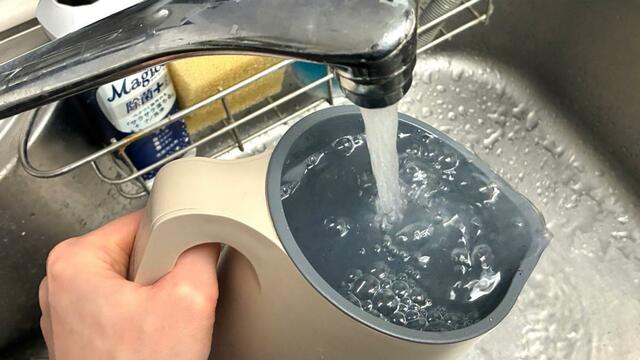 何度も使ってみて気づいたのは、注ぎ口の穴が狭く、蓋を外して注いほうが断然使いやすいこと。