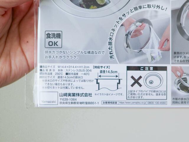 また、排水口の対応サイズは「直径14.5cmの排水口」です。