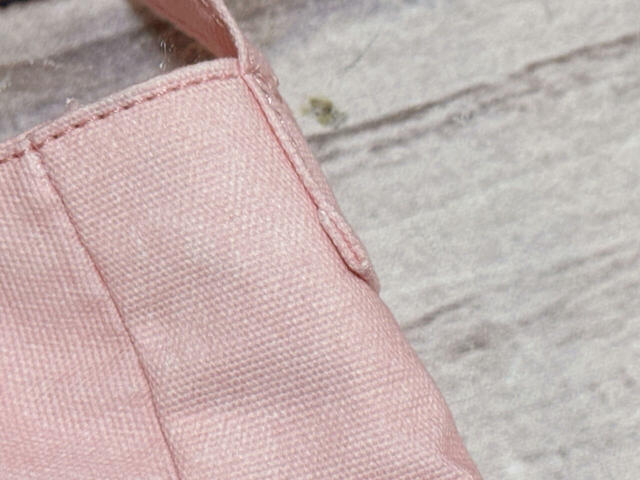 内側の生地は、ちいかわとうさぎのイメージカラーを思わせるピンク×淡いイエローのストライプ柄。無地ではなく、さりげなく遊び心を感じさせるデザインが◎。