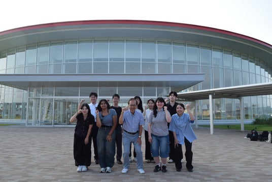 神田外語グループでは、2023年に福島県と包括連携協定を締結して以来、教育活動を通して福島との連携を進めています。その一環として実施しているのが、学生主体による「震災復興発信プロジェクト」です。中心を担うのは、グローバル人材の育成を目指す神田外語大学・柴田真一ゼミの学生19名で、2025年8月には福島県浜通り地域を訪問。震災復興や新産業、特産品、地域振興など、「福島の過去・現在・未来」を自らの目で取材し、その経験と学びをもとに日英版の震災復興新聞『福島とともに(英題”Together with Fukushima”)』を完成させました。