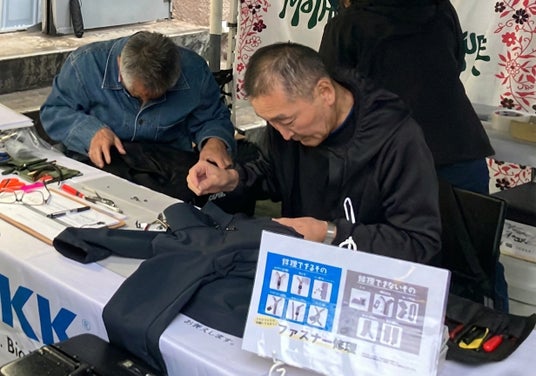 YKK製ファスナーを対象に、事前予約制で無料のリペアサービスを実施します。破損状況により対応できない場合がありますが、専門スタッフが簡単な修理をサポートします。