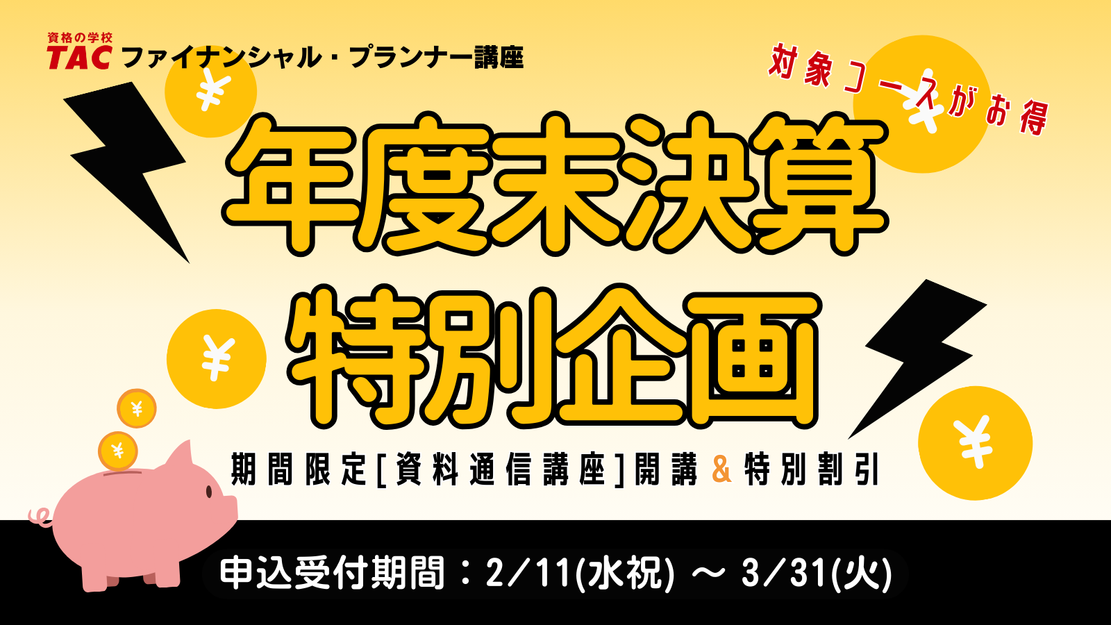 TAC FP講座「年度末決算特別企画 期間限定[資料通信講座]開講&特別割引」