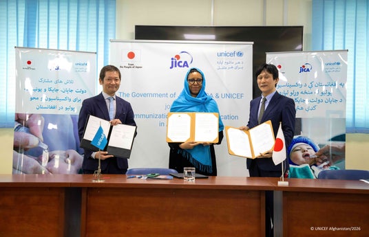 日本は20年以上にわたり、アフガニスタンにおけるUNICEFの主要なパートナーとして、ワクチンの調達、コールドチェーン・システム、予防接種事業を支えてきました。これらの支援は、予防可能な病気から子どもたちを守り、複合的な危機においても、子どもたちが生き延び、成長し、健やかに育つことができるという希望を家族たちにもたらしてきました。UNICEFは、アフガニスタンの子どもたちの健康とウェルビーイング、未来に対する日本政府と国民の揺るぎないコミットメントに深い感謝の意を表します。