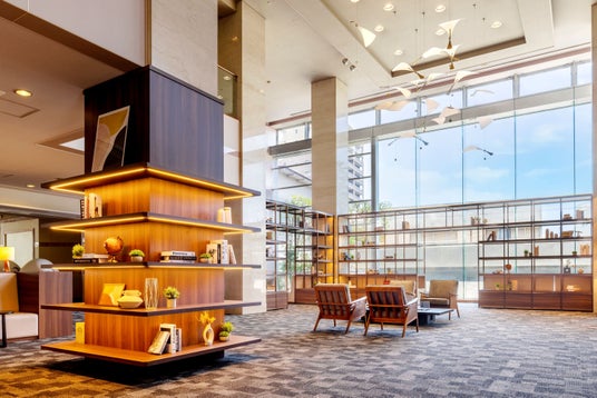 ライブラリーのあるプレミアムラウンジでは、滞在中に自由に利用できる無料のドリンクをご用意しております。暖炉の炎に癒されながら、思い思いの時間をお楽しみください。