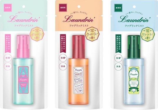 ランドリンTEA 携帯用ファブリックミスト(左からホワイトティー、ウーロンティー、グリーンティー)各50mL 437円(税込)