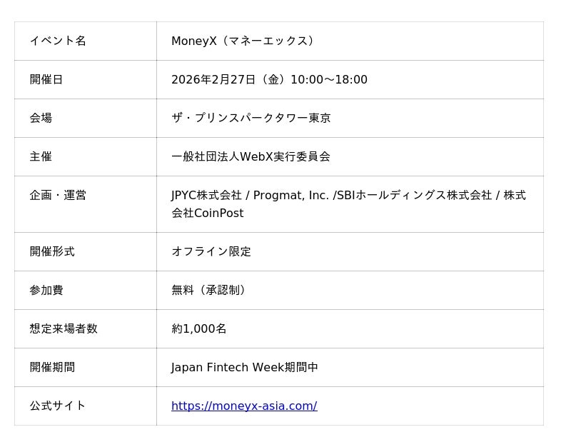 詳細:ステーブルコインの正式認可を背景に、通貨の新時代をテーマとした金融カンファレンス「MoneyX(マネーエックス)」開催決定