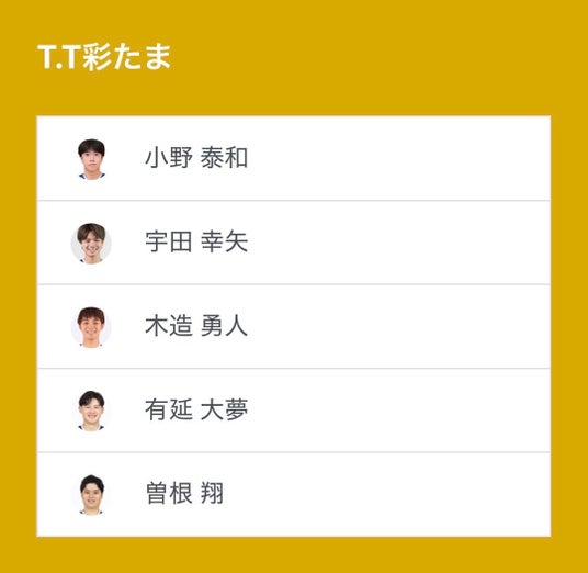 ノジマTリーグ 2025-2026シーズン 公式戦 2月14日(土)開催 T.T彩たま vs 金沢ポートのベンチ入り選手を発表いたします。