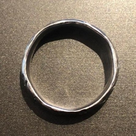 リング内側加工ハワイアナのフルオーダーメイドのリングには、内側に特別な加工を施します。通常の内側をフラットにする加工の場合、リングの幅が広くなるほど、リングと指の間に隙間がなくなり、長時間つけていると、指がふやけたり、かゆみを感じたりすることがあります。内側を凹凸のある加工に仕上げることで、リングと指の間にわずかな隙間を生みだし、ストレスのない着け心地を実現しています。