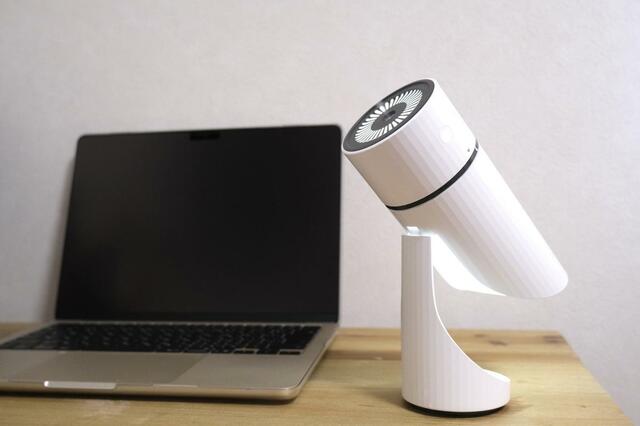 デスクに置いたまま角度を調整すると、顔のほうにしっかりミストを向けられます。