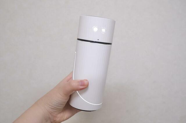 サイズは幅9×奥行8×高さ19cm。デスクやベッドサイドなど、パーソナルスペースでの使用を想定した設計で、大きな加湿器を置くほどではない場所にも、無理なくなじみます。