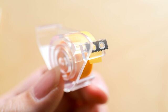 貼ったテープを指で抑えて、前傾にした状態で本体を引くと、刃の部分でカットすることができます。